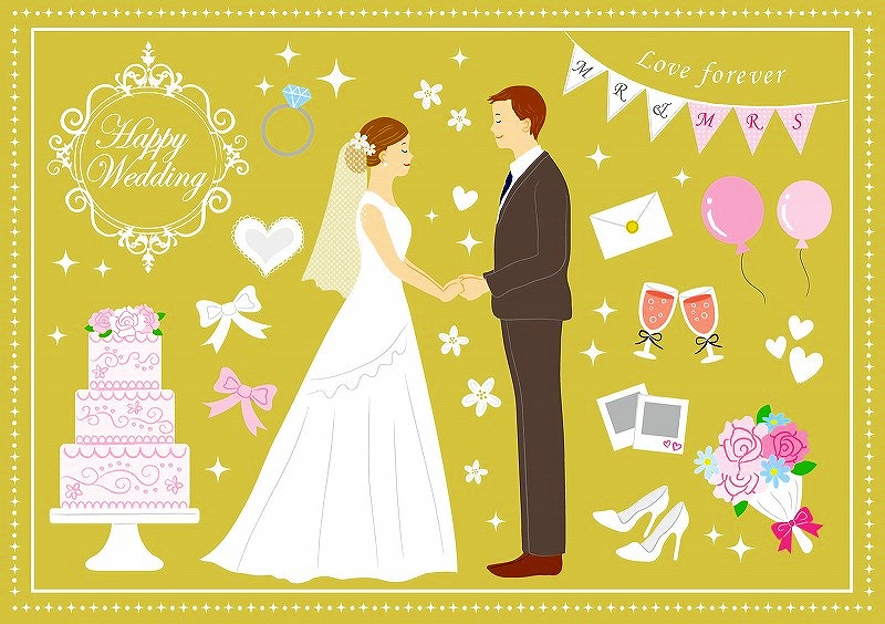 郵便局の無料テンプレートや、キヤノンやエプソンの年賀状アプリにも「結婚報告向けフレーム」があって便利ですよ。